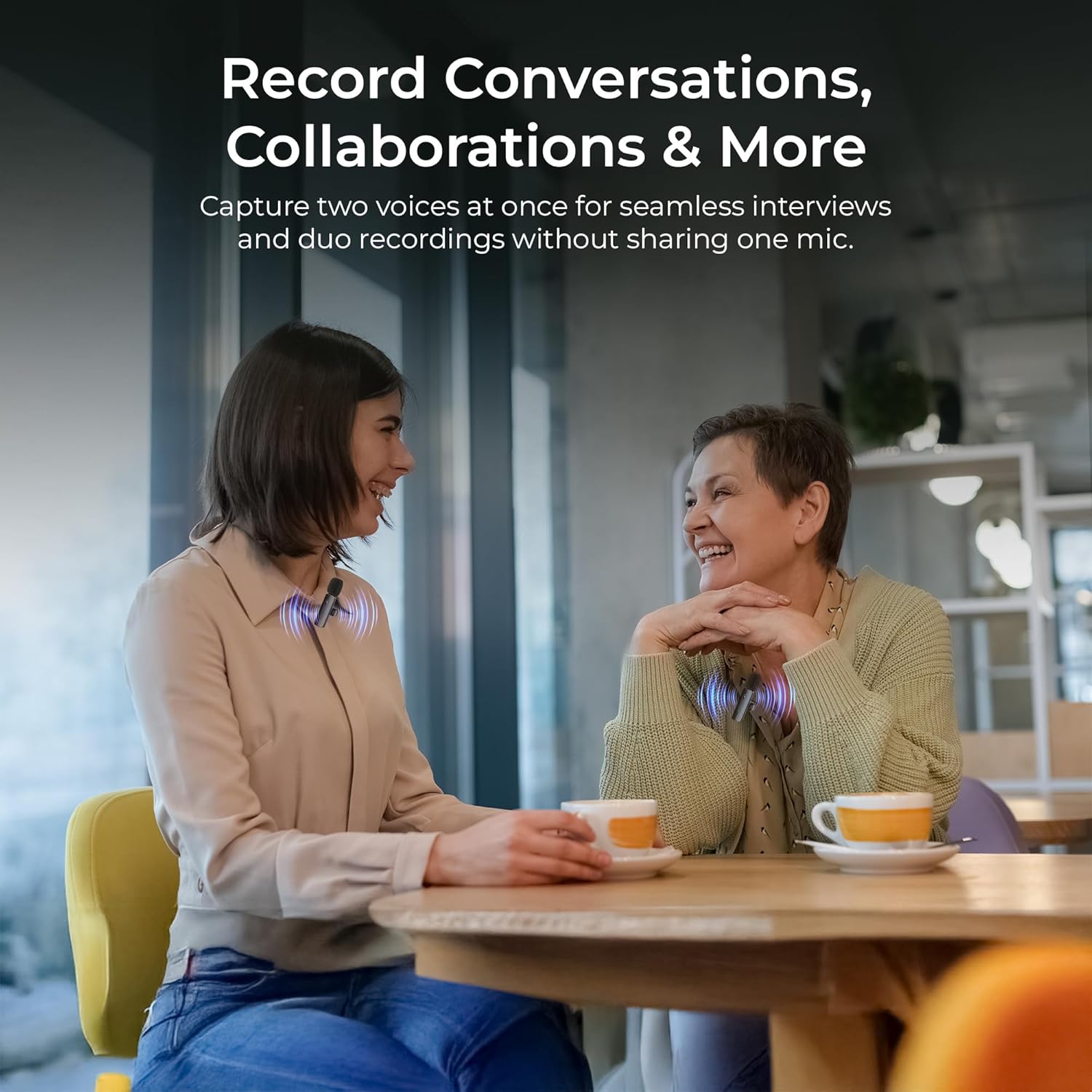 Each transmitter is powered by a built-in rechargeable battery that provides up to 4 hours of continuous operation, making it ideal for long interviews, lectures, or outdoor shoots. The lightweight design ensures comfort even during extended use, while the compact charging case (if included by manufacturer) makes it easy to carry and recharge between sessions.
