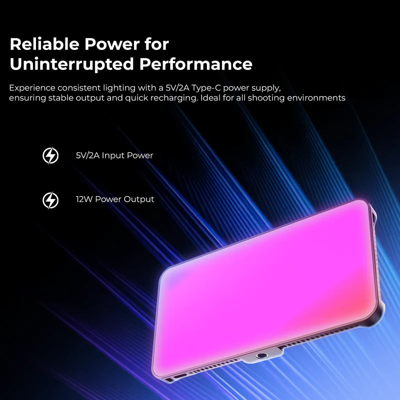 The inbuilt 4000mAh rechargeable battery provides long usage time, ensuring uninterrupted shoots. Combined with 0–100% adjustable brightness, it allows precise control to match different shooting scenarios. The portable design makes it travel-friendly, while the universal 1/4" screw mount ensures compatibility with tripods, stands, cages, rigs, and camera setups.